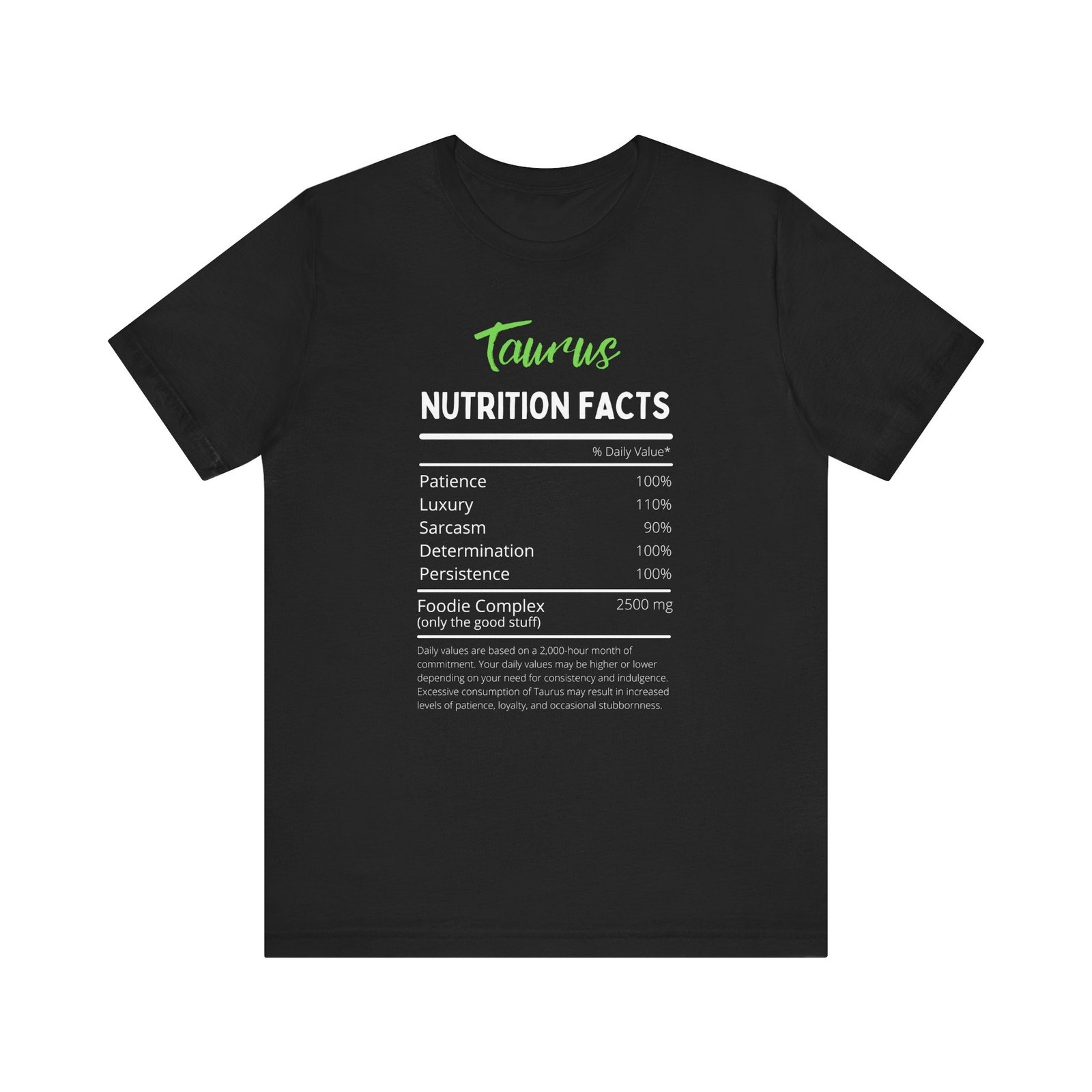 Embrace your zodiac charm with a tee that’s designed to make you smile. The Taurus Nutrition Facts tee is not just a piece of clothing; it’s a statement of personality and style. Perfect for those who enjoy art and gift giving, this tee combines humor, comfort, and quality in one delightful package.